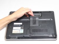 Turn your laptop over so the bottom of your laptop is facing up and the hinge is located away from you
