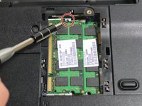 Locate the 2 silver release buttons inside the RAM socket, indicated in the pictures. They are on opposite sides of the socket.
