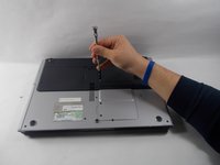 Orient the laptop with the memory cover towards you.