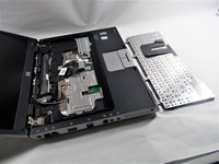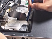 Carefully disconnect the ribbon strip from the keyboard by pressing on the tabs at the edges.