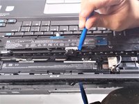 Using a metal spudger, pry up on the plastic piece above the keyboard containing the power button.