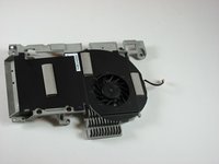 Remove the two 10.0 mm screws securing the fan on either side of the external monitor port.