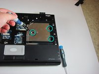 Remove the two 5.0mm screws securing the hard drive bracket.