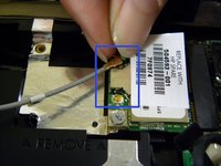 • Remove the single silver screw from the WLAN module, and pull the module away from the slot at a 45-degree angle.