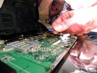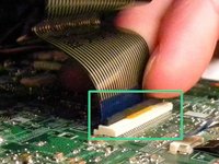 • Disconnect the hard drive from the hard drive cable by pulling them apart at the connector. The cable can be difficult to loosen, so while being gentle, you will have to pull hard to disconnect the hard drive.