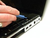 • Using the plastic opening tool, loosen the switch cover by inserting the tool under the cover and gently pulling up until the switch cover releases. Begin at the top right-hand corner of the keyboard.