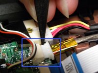 • Disconnect the power connector cable by using the flat end of the spudger tool. Gently pry the cable until it completely disconnects, or you are able to grab the plastic piece, NOT the wires, to remove the cable.