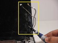 Remove the WLAN antenna cables and the webcam/ microphone cable from the clips built into the top cover.