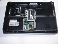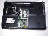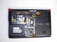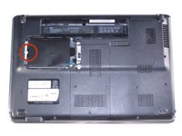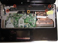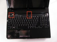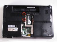 With laptop upside down locate the three sets of screws that fasten the keyboard and switch cover.