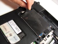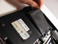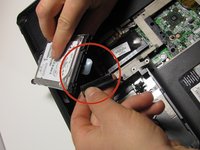 Use the Mylar tab to lift the hard drive up, and then slide it to the left to release it from the hard drive bay.