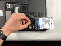 Pull the tab at the end of the cable connecting the hard drive to the laptop.