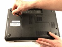 Begin removing the bottom cover by sliding the battery removal slider to the right to pop off the top of the cover.
