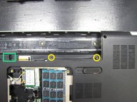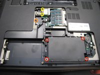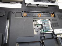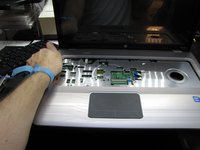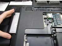 The first step is to remove the middle section housing the hard drive, wireless card, and ram