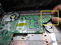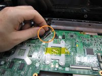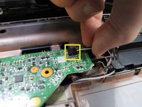 On the far right of the motherboard, there is a right-facing connector that runs to the wireless card. Wiggle the connector out, to the right.