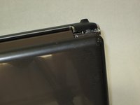 Using the plastic opening tool, push both sides of the dark gray slide towards the screen of the computer.