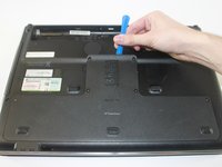Pry the back casing up and away from the rest of the laptop with the plastic opening tool.