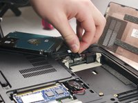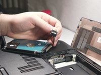 Place the old hard drive off to the side (as seen in photo) and carefully remove the SATA cable from laptop.