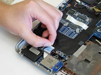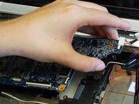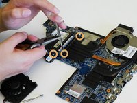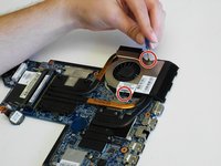 Flip the motherboard over. Use a micro- screwdriver to remove the screws holding the fan assembly in place.