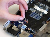 Lift the plastic tab that connects the keyboard ribbon cable to the motherboard.