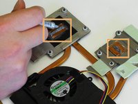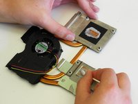 The old fan can be removed by sliding it out of the fan/heat sink assembly.