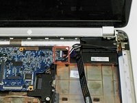 Unplug the speaker wire from the port in the lower left hand corner of the laptop.