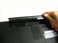 Slide the battery switch to the left until the battery unlatches from the base of the laptop.