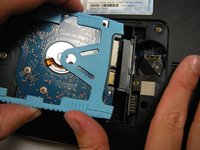 Pull the triangular blue tab to diconnect and remove the hard drive. You can see the word 'Pull' on the cover.