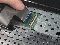 • Using tweezers, pull the trackpad ribbon cable out from the connector on the motherboard.
