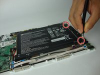 Using the Phillips #0 screwdriver, carefully remove the 4 corner screws that hold the battery to the display panel.