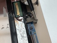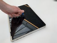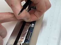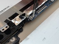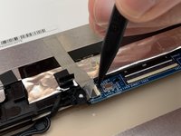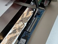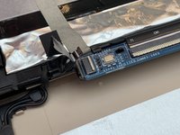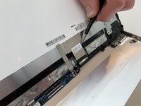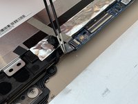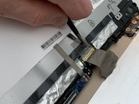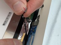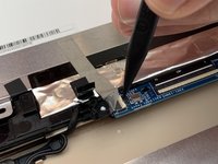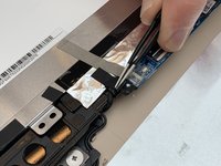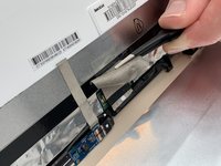 Using the Blunt Tweezers, remove the black tape covering the connection cable between the screen and the rest of the laptop.