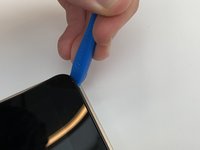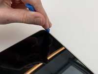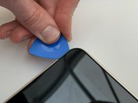 Wedge the edge of the iFixit Plastic Opening Tool between the outer casing and the screen and begin prying the screen away from its casing.