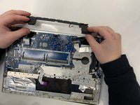 Grab the speaker and pull out to remove the speakers from the hinge housing.