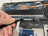 Disconnect connectors 1 and 2 of the wireless card using the spudger.