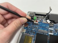 Lift the right side of the large portion of the motherboard up and away from the frame of the laptop.