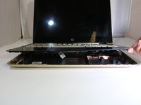 Gently lift the keyboard on the mouse pad side, but do not remove.