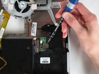 Unscrew the two 8mm Philips screws that attach the hinge to the laptop's display.