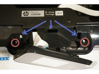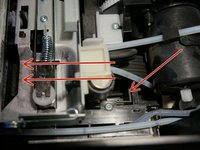 Now, push the carriage that holds the print head cleaning system (Red arrows)