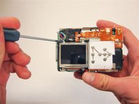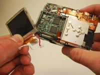 Allow the LCD screen to flip down. This will expose the electric strip that connects the screen to the camera.