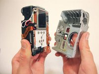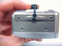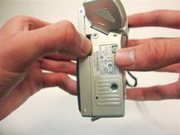Turn the camera over to the side that once housed the LCD screen. Locate the electric strip near the top of the camera.
