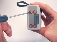 Use a Phillips #00 screwdriver to remove the two 4.7 mm screws in the bottom of the plastic casing.