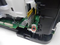 Using the T9 Torx Security screwdriver bit, unscrew the 12 mm screw on the far left side on the top of the printer.