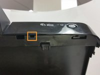 Pull the middle of the cover plate away from the printer until the tab in the middle is free.