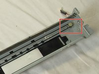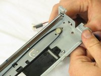 Inside the printer is a small white tab. Press it inward with a spudger until a pop is heard.