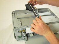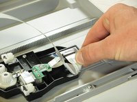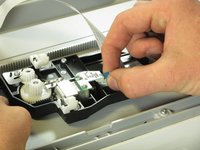Inside the printer is a small white tab. Press it inward with a spudger until a pop is heard.