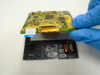 Using a plastic opening tool, pry up the locking tab of the ZIF connector on the right side of the device and pull out the ribbon cable.
