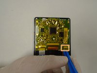Using plastic tweezers, gently unplug the ribbon cable from the board.