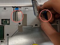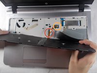 Once keyboard is removed, there will be two ribbon cables connecting the keyboard to the laptop. there will be two latches holding the cables in place on the laptop. to undo these latches, insert a spudger underneath the latch and lift up to free the cable.