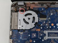 Remove the 6.6mm T8 Torx screw located below and to the left of the circular, silver and black fan.