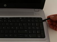 Insert the spudger in between the edge of the keyboard and the computer frame.