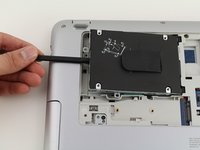 Pull the hard drive diagonally to the left to release the hard drive from the laptop.